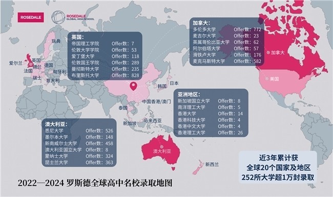 23-24学年,罗斯德全球高中中国区1253名毕业生共斩获包含英国G5、澳洲八大、加拿大多大等顶尖院校在内的,全球15个国家及地区174所大学的4458封录取,创十年历史新高!这4458封Offer中,世界TOP100大学Offer占比69%,世界TOP200大学Offer占比91%,累计奖学金突破550w加币(约合3000w人民币)。这不仅展示了罗斯德OSSD在全球范围内的广泛认可度,更证明了罗斯德OSSD课程的学术含金量。